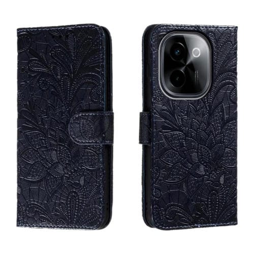 Para Vivo Y200 5G Funda para Teléfono de Cuero con Tapa y Estampado de Flores de Encaje (Azul Oscuro)