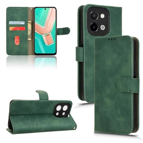 Para Vivo Y28 4G Skin Feel Funda de Cuero con Tapa Magnética (Verde)