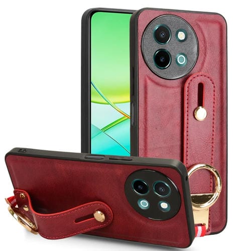Para Vivo Y38 5G / Y200I 5G Funda Trasera de Cuero para Teléfono con Pulsera (Rojo)