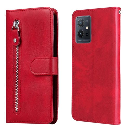 Para Vivo Y55 5G / Y75 5G / T1 5G Fashion Calf Texture Zipper Funda de Cuero Horizontal Flip (Rojo)