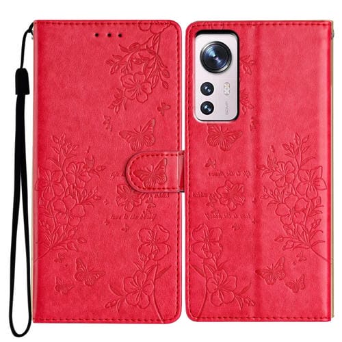 Para Xiaomi 12 Pro Funda de Cuero para Teléfono con Mariposas y Flores (Rojo)