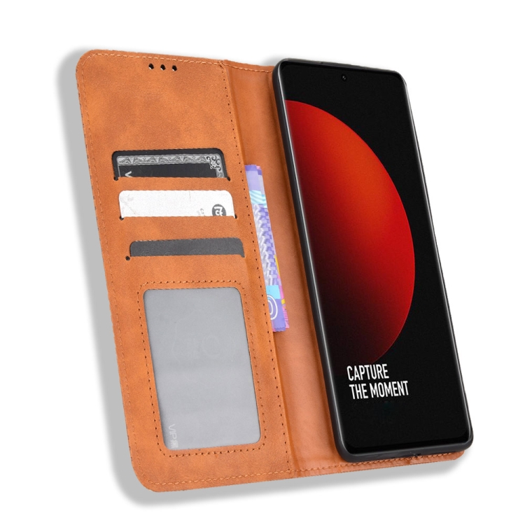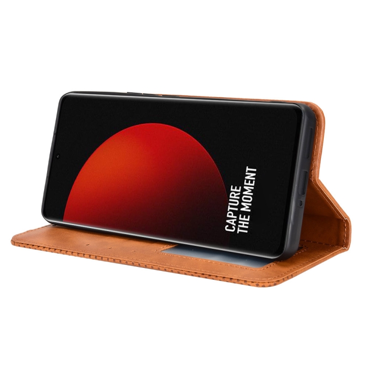 Para Xiaomi 12S Funda de cuero con textura retro con hebilla ultra magnética (marrón)