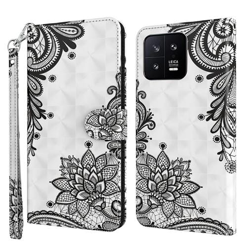 Para Xiaomi 13 3D Patrón de Pintura Funda de Cuero con Tapa para Teléfono (Flor Negra Diagonal)