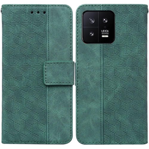 Para Xiaomi 13 5G Caja de Teléfono de Cuero En Relieve Geométrico (Verde)