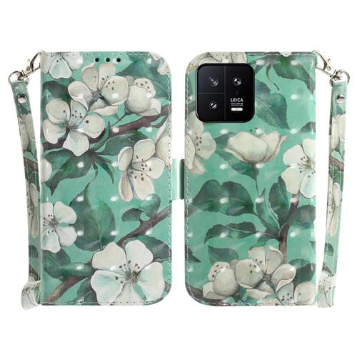 Para Xiaomi 13 5G Estuche de Teléfono de Cuero con Tapa Horizontal de Color 3D (Flor de Acuarela)