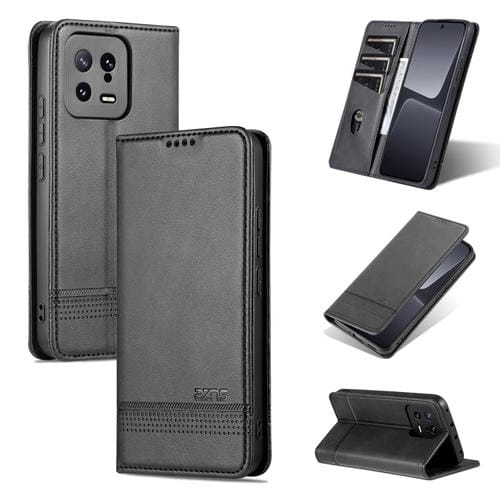 Para Xiaomi 13 Azns Funda de Teléfono con Tapa de Cuero con Textura de Becerro Magnético (Negro)