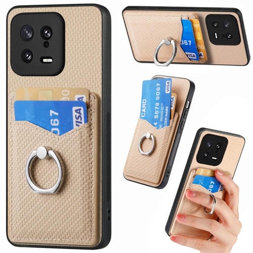 Para Xiaomi 13 Carbon Fiber Card Wallet Ring Holder Phone Case (Caqui)