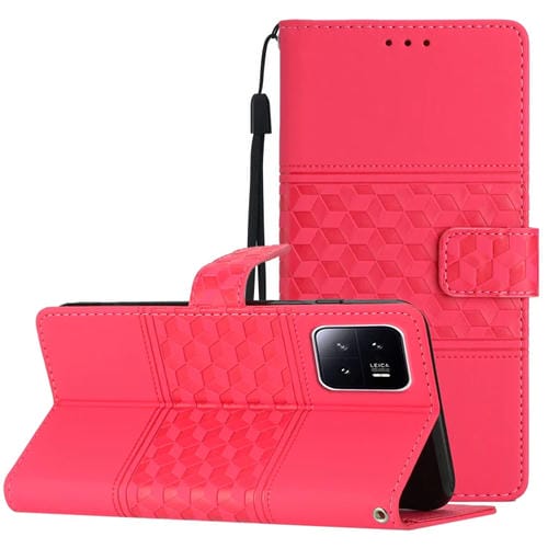 Para Xiaomi 13 Diamond Relieve Skin Feel Leather Phone Case con Cordón (Rojo)