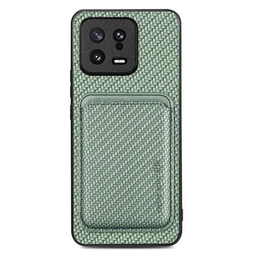 Para Xiaomi 13 Funda de Teléfono Magsafe con Tarjeta de Cuero de Fibra de Carbono (Verde)