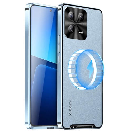 Para Xiaomi 13 Magsafe Caja de Teléfono de Metal Esmerilado Magnético (Azul)