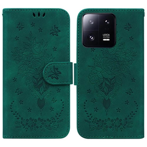 Para Xiaomi 13 Pro Butterfly Rose Estuche para Teléfono de Cuero En Relieve (Verde)