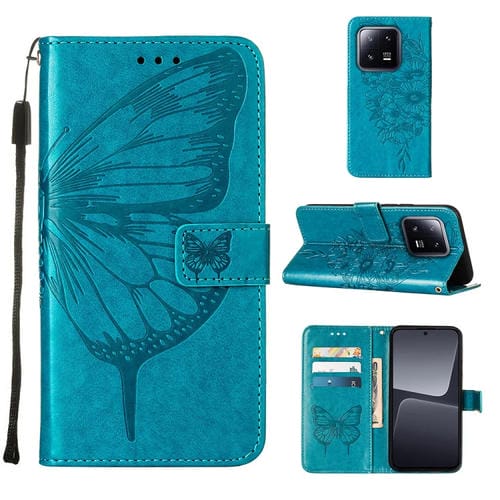 Para Xiaomi 13 Pro Estuche para Teléfono de Cuero con Mariposa En Relieve (Azul)