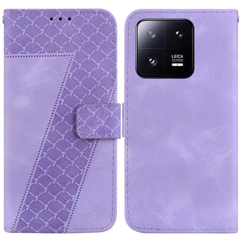 Para Xiaomi 13 Pro Funda de Teléfono de Cuero En Relieve En Forma de 7 (Púrpura)