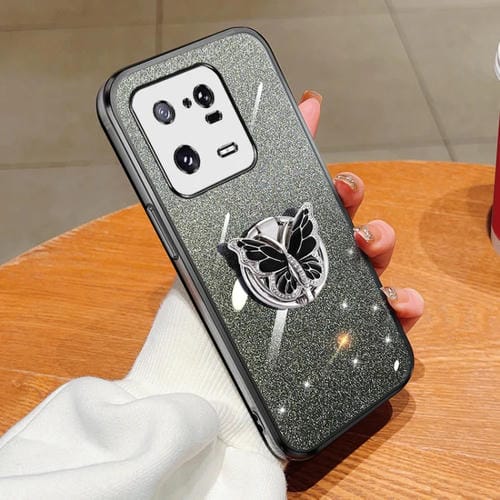 Para Xiaomi 13 Pro Funda para Teléfono de TPU con Soporte de Mariposa con Brillo Degradado Plateado (Negro)
