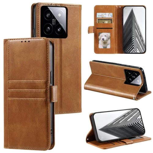 Para Xiaomi 14 Funda De Cuero Para Teléfono Con Billetera Simple Para 6 Tarjetas (Marrón)