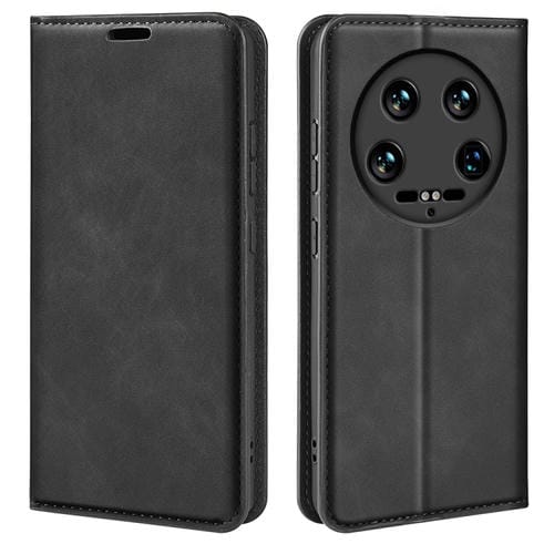 Para Xiaomi 14 Funda De Cuero Para Teléfono Con Succión Magnética De Piel Ultra Retro (Negro)