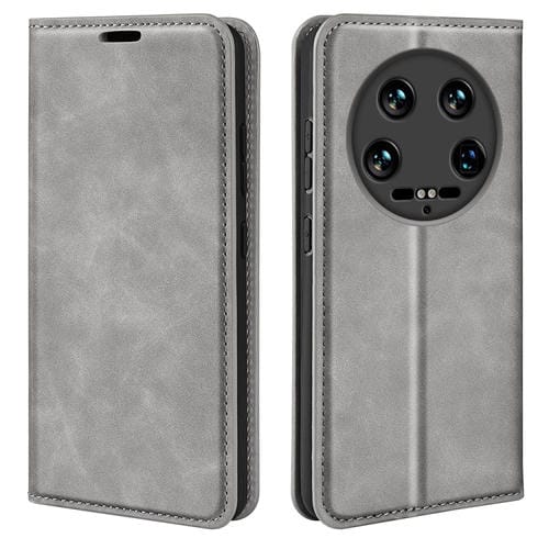 Para Xiaomi 14 Funda De Teléfono De Cuero Con Succión Magnética De Piel Ultra Retro (Gris)