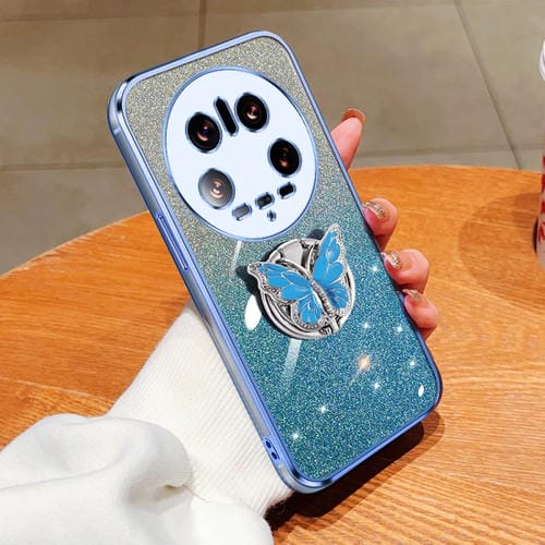 Para Xiaomi 14 Funda Para Teléfono De Tpu Con Soporte De Mariposa Con Brillo Degradado Ultra Plateado (Azul Sierra)
