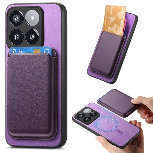 Para Xiaomi 14 Pro 5G Retro Magsafe Card Bag Pu Funda Para Teléfono Con Contraportada (Púrpura)