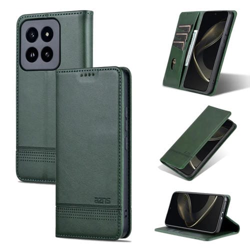 Para Xiaomi 14 Pro Azns Funda De Teléfono De Cuero Con Tapa Con Textura De Pantorrilla Magnética (Verde Oscuro)