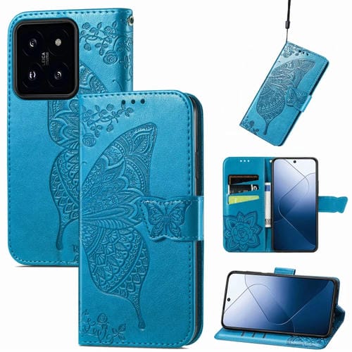 Para Xiaomi 14 Pro Butterfly Love Flower Funda De Cuero Para Teléfono En Relieve (Azul)
