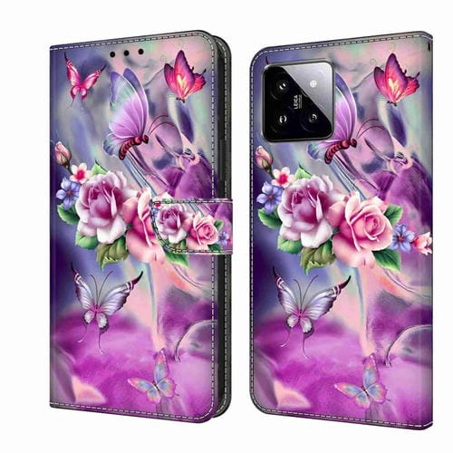Para Xiaomi 14 Pro Crystal 3D Funda Protectora De Cuero Para Teléfono A Prueba De Golpes (Mariposa)