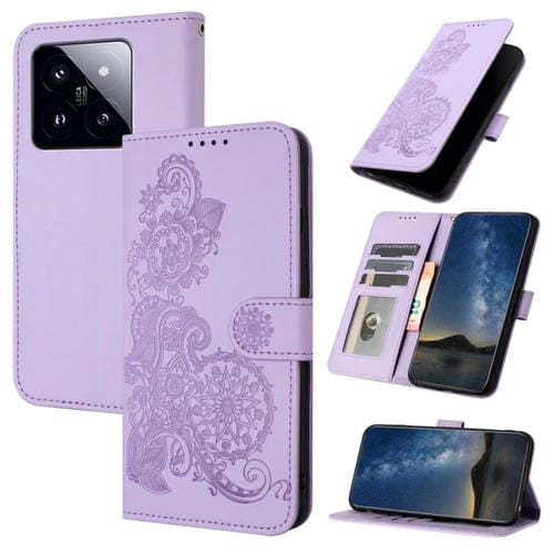 Para Xiaomi 14 Pro Datura Flower Funda De Teléfono De Cuero Con Tapa En Relieve (Púrpura)