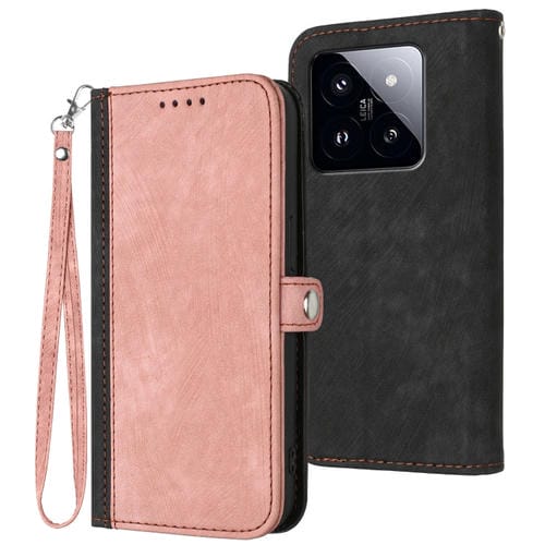 Para Xiaomi 14 Pro Hebilla Lateral Doble Pliegue Correa De Mano Funda De Cuero Para Teléfono (Rosa)