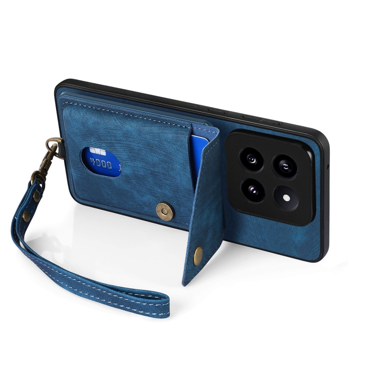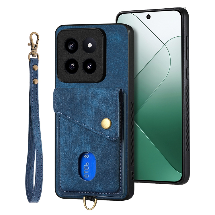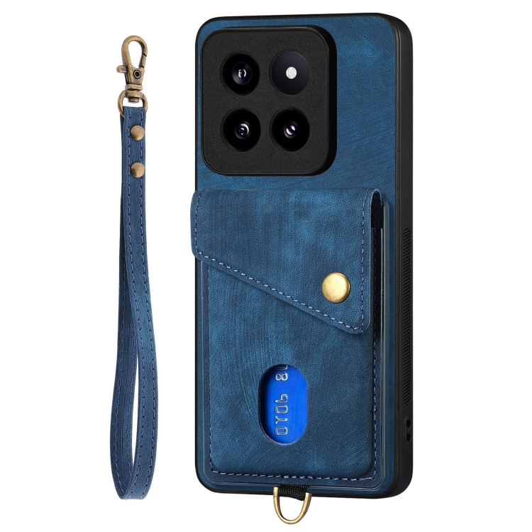 Para Xiaomi 14 Pro Retro Card Wallet Fold Funda De Cuero Para Teléfono Con Correa (Azul)