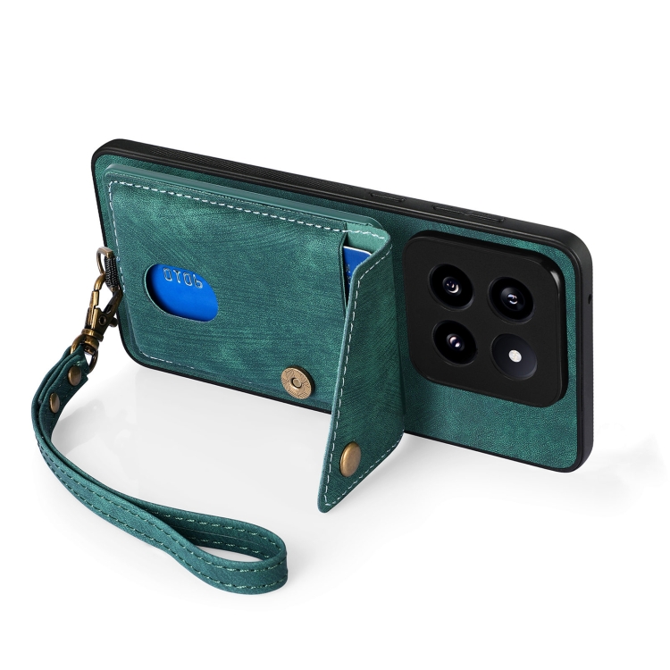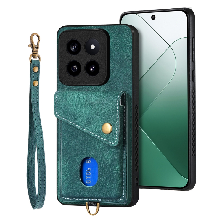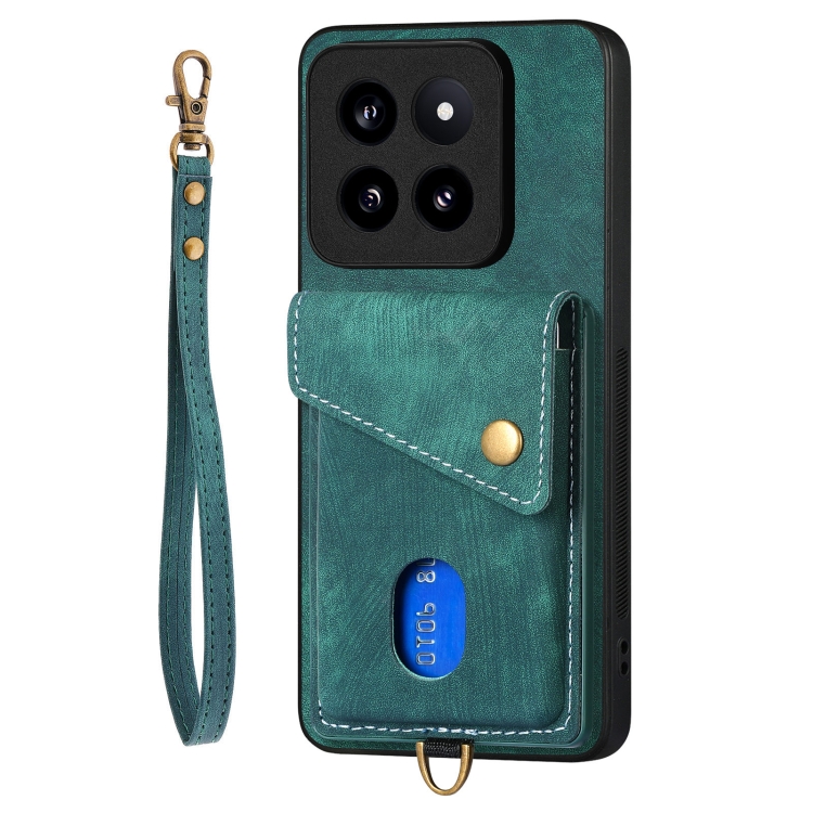 Para Xiaomi 14 Pro Retro Card Wallet Fold Funda De Cuero Para Teléfono Con Correa (Verde)