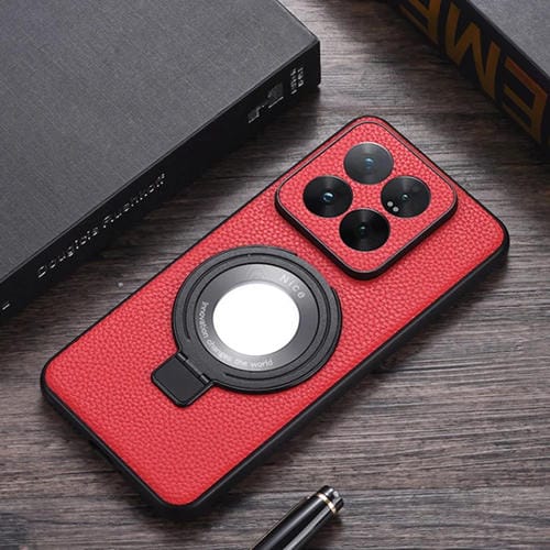 Para Xiaomi 14 Pro Soporte Para Lupa Litchi Texture Pu Funda Para Teléfono (Rojo)