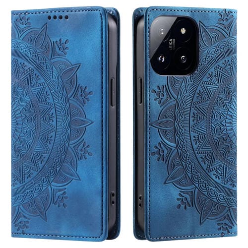 Para Xiaomi 14 Pro Totem Funda De Cuero Magnética En Relieve Para Teléfono (Azul)
