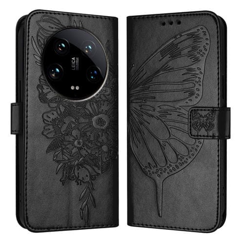 Para Xiaomi 14 Ultra 5G Funda De Teléfono De Cuero Con Mariposa En Relieve Global (Negro)