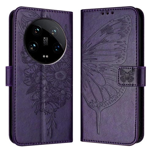 Para Xiaomi 14 Ultra 5G Funda Para Teléfono De Cuero Con Mariposa En Relieve Global (Púrpura Oscuro)