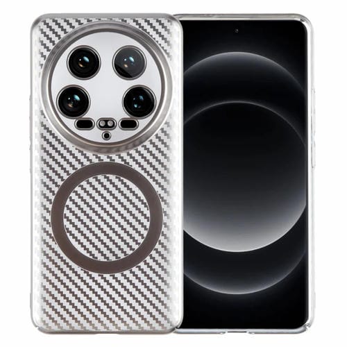 Para Xiaomi 14 Ultra 6D Caja De Teléfono Para Pc Magsafe Transparente Con Fibra De Carbono Plateada (Gris Titanio)