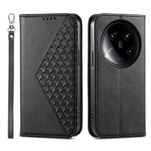 Para Xiaomi 14 Ultra Cubic Grid Calf Texture Funda De Teléfono De Cuero Magnético (Negro)