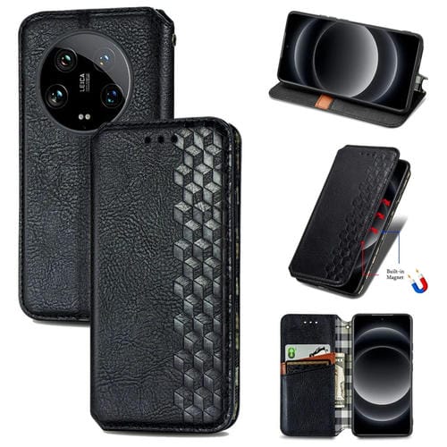 Para Xiaomi 14 Ultra Cubic Grid Funda De Teléfono De Cuero Magnético Prensado (Negro)