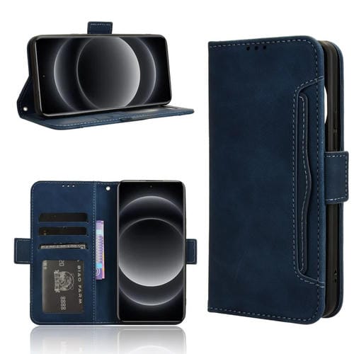 Para Xiaomi 14 Ultra Skin Feel Becerro Textura Ranuras Para Tarjetas Funda De Cuero Para Teléfono (Azul)