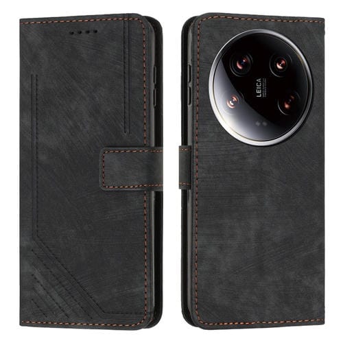 Para Xiaomi 14 Ultra Skin Feel Funda De Cuero Con Patrón De Rayas Y Cordón Largo (Negro)