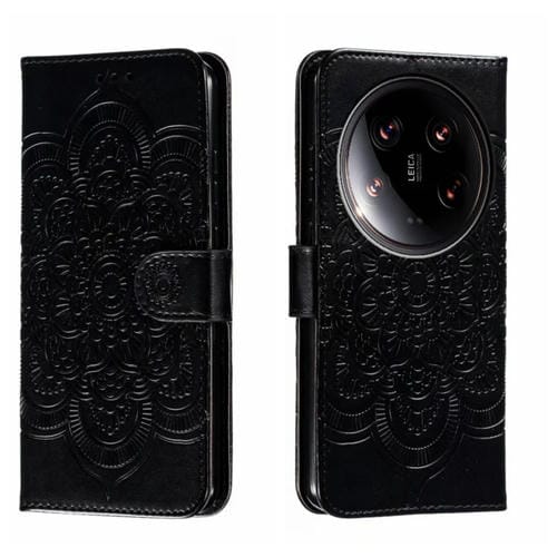 Para Xiaomi 14 Ultra Sun Mandala Funda De Cuero Para Teléfono Con Patrón En Relieve (Negro)