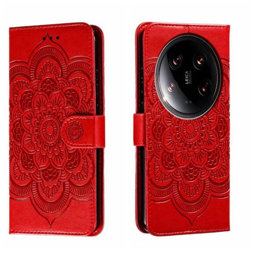 Para Xiaomi 14 Ultra Sun Mandala Funda De Cuero Para Teléfono Con Patrón En Relieve (Rojo)
