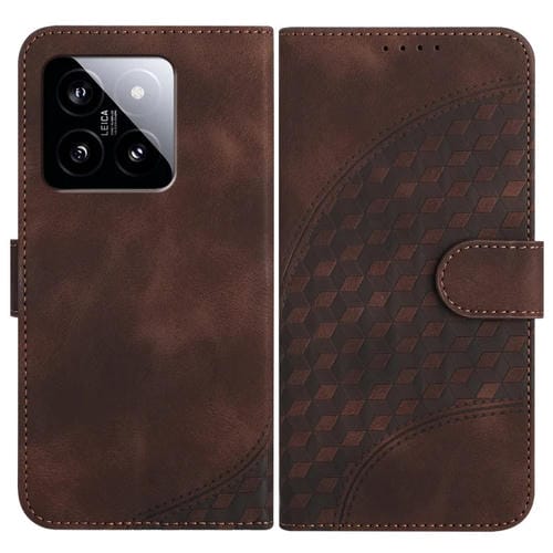 Para Xiaomi 14 Yx0060 Funda De Cuero Para Teléfono Con Relieve Y Cabeza De Elefante Con Cordón (Café)