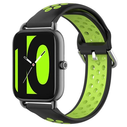 Banda de Reloj de Silicona Deportiva para Xiaomi Haylou Rs4 Ls12 22mm Perforada (Negro + Lima)