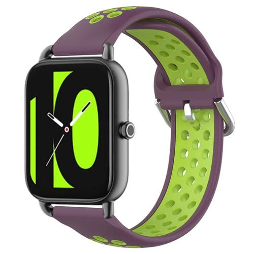Banda de Reloj 22mm para Xiaomi Haylou Rs4 Ls12 Silicona Deportiva Perforada (Púrpura + Lima)