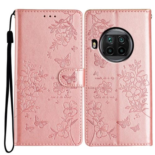 Para Xiaomi Mi 10T Lite 5G Funda de Cuero para Teléfono con Mariposas y Flores (Oro Rosa)