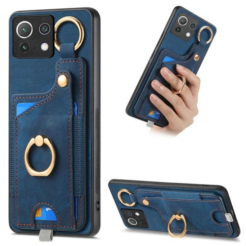 Para Xiaomi Mi 11 Lite Funda para Teléfono con Bolsa para Tarjeta con Anillo y Sensación de Piel Retro con Lazo para Colgar (Azul)