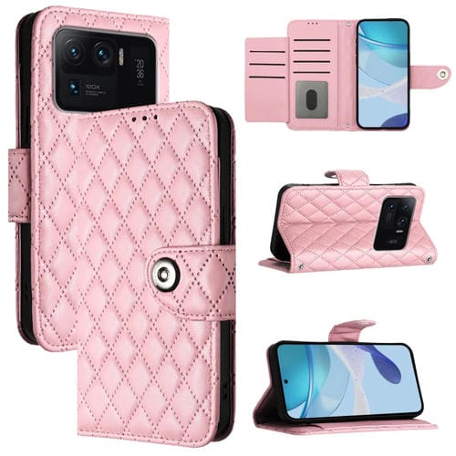 Para Xiaomi Mi 11 Ultra Rhombic Texture Funda de Cuero con Tapa para Teléfono con Cordón (Rosa)