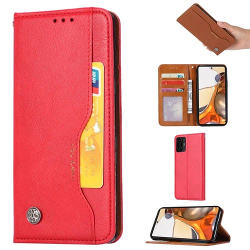 Para Xiaomi Mi 11T / 11T Pro Skead Skin Texture Horizontal Flip Funda de Cuero con Marco y Soporte de Fotos y Tragamonedas y Billetera (Rojo)