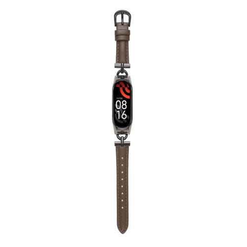 Correa de Reloj para Xiaomi Mi Band 3 / 4 Acero Forma de D Cuero Genuino (Negro Marrón)