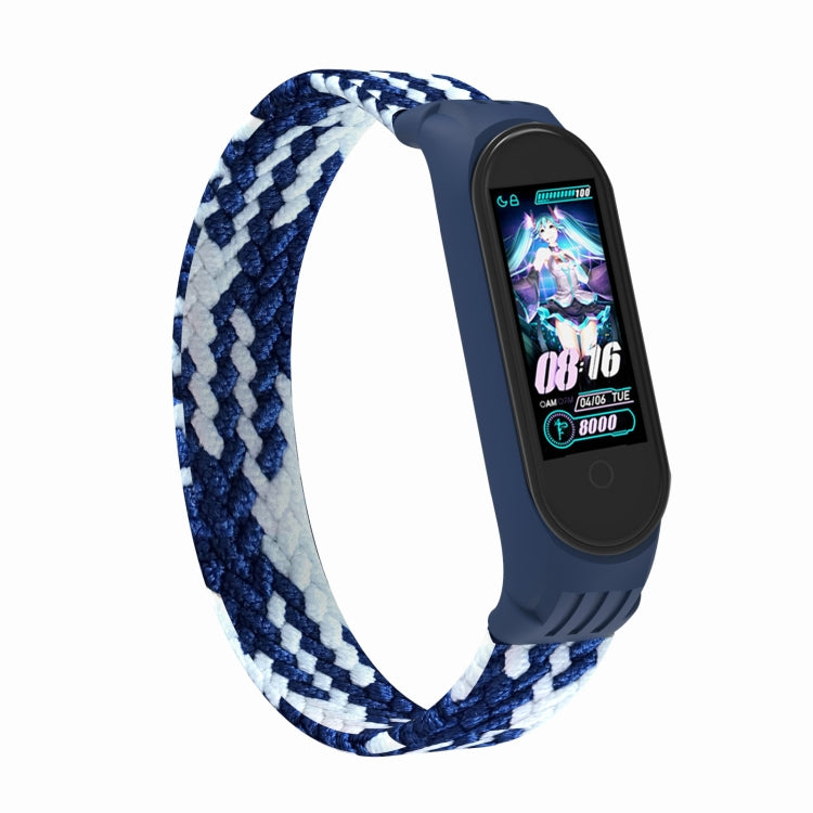 Para Xiaomi Mi Band 5/4/3 / Huami Single Lap Hyarn + TPU Strap Band, tamaño: L (azul + blanco)